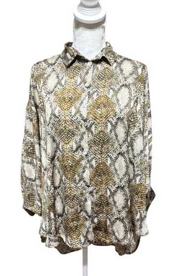 Alembika Brown Python Snakeskin Print Button-Up Blouse S
