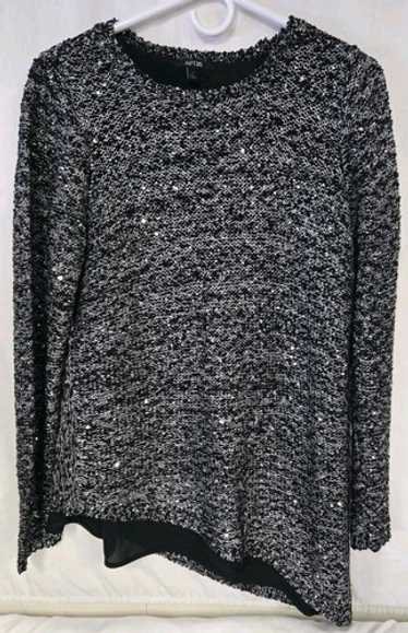 Apt. 9 Womens Size Large Asymmetrical Sequin Crewneck Sweater Black Gray Chiffon