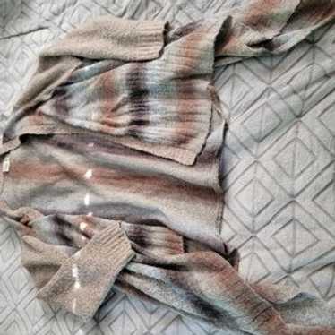 Barefoot Dreams CozyChic Cliffside Wrap Open Sweater Striped Brown One Size Plus