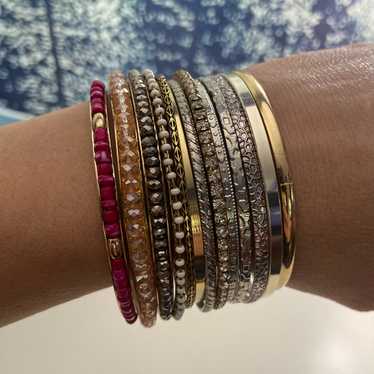 Bundle Bohemian Jewels Brass Bangle Bracelet Gold Tone Multi Color Elegant