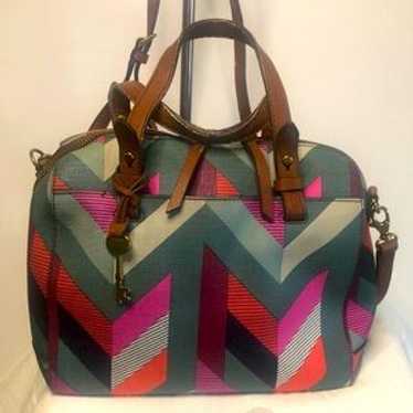 Fossil Multi Colored Printed Handbag With Handles & Long Straps. Leather Straps.