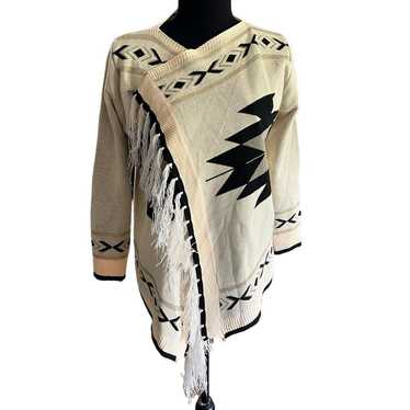 Chaser Aztec Print Open Front Wool Sweater with Fringe Women's Size Medium