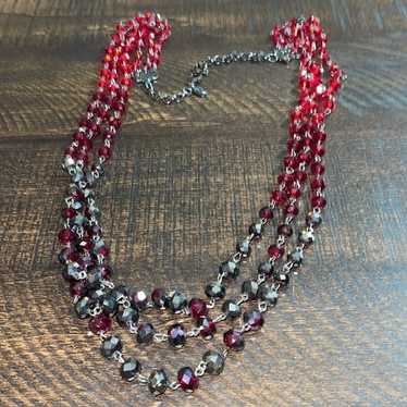 Gorgeous Iridescence Red Crystal Multi Strand Station Necklace