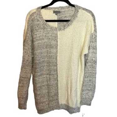 Joseph A Gray And Cream Color Block Fuzzy Sweater, Size Large