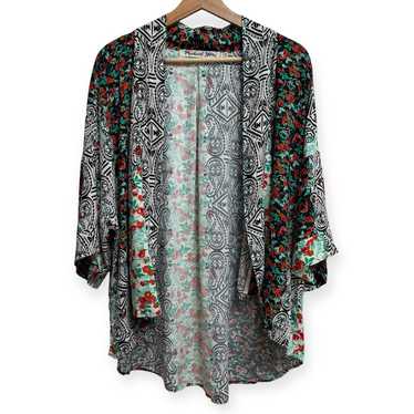 Michael Stars Mixed Pattern Patchwork Open Front Short Sleeve Kimono Os