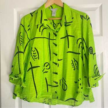 Multiples Lime Green Graphic Button-Down Shirt NWT
