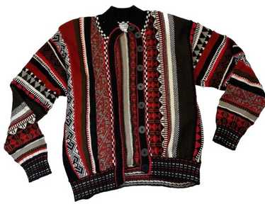 Peruvian Connection 100% Alpaca Button Sweater Size Medium Red Black Cream Brown