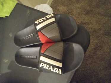 Prada Saffiano Leather Slides Neutrals Studded Accents