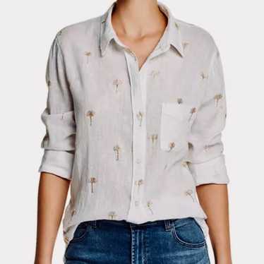 Rails Charli Golden Palms Linen Blend Button Up Shirt White Gold Size M