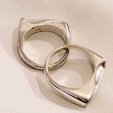 Silver Tone Stackable Rings Tribal Design Beach Boho Island Set of 2