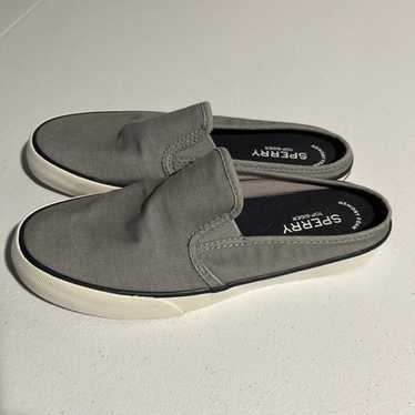 Sperry Topsider grey slides memory foam canvas women’s size 6 1/2