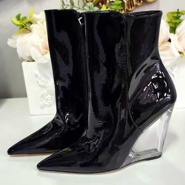 Stuart Weitzman Lucite 100 Black Patent Wedge Heel Ankle Boots Sz 6 Nib $750
