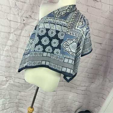 Talbots Navy Blue 10% Pure Silk, Navy Blue, Sheer Boho Crop Blouse
