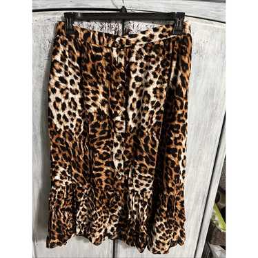 Talbots ruffled button up leopard maxi skirt large Y2K Boho Animal