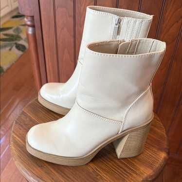 Universal Thread Block 4” Platform & Square Toe Cream Ankle Boots Euc! Size 8.5
